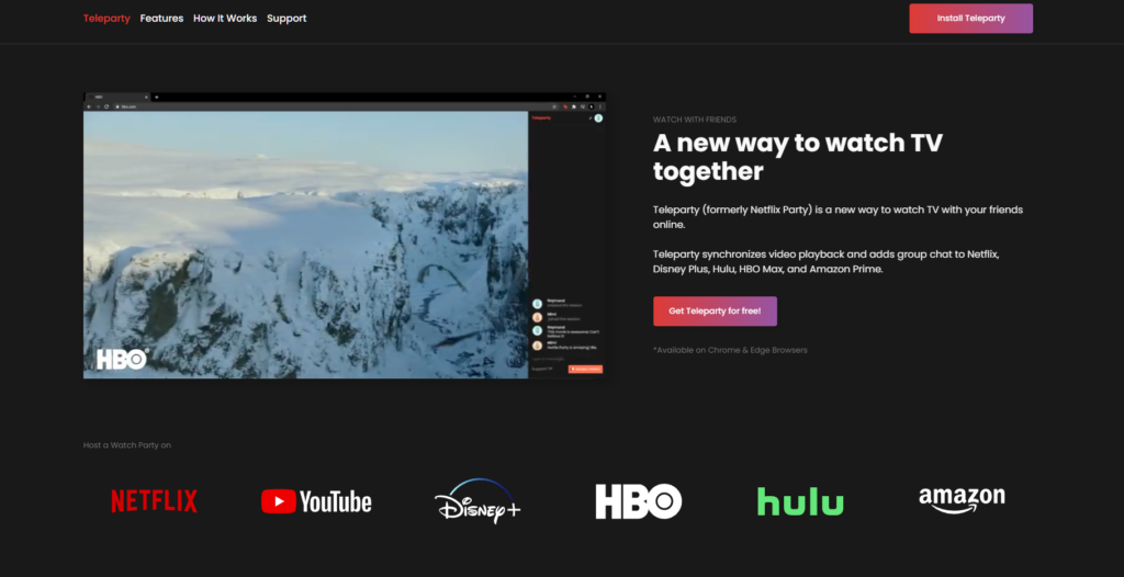 Netflix Party (now Teleparty) is a Chrome extension app that has become increasingly popular since COVID-19. It allows users to watch the same movie at the same time. They can even chat with each other while watching a movie or TV show.
