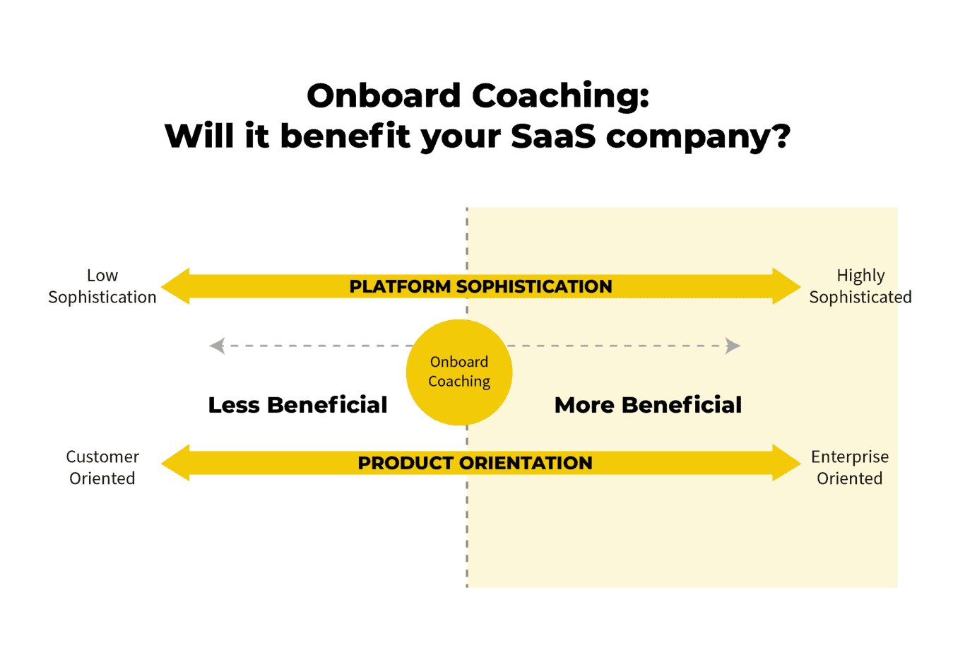 If your product falls somewhere in the middle to the right on both spectrums (leaning towards enterprise and robust platform), you'll find that lifetime value warrants some onboarding coach experience.